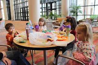 After dashing through the play zone, we went out to the cafe area for a "picnic" lunch. That's when I realized that I hadn't gotten a picture of all the kiddos.